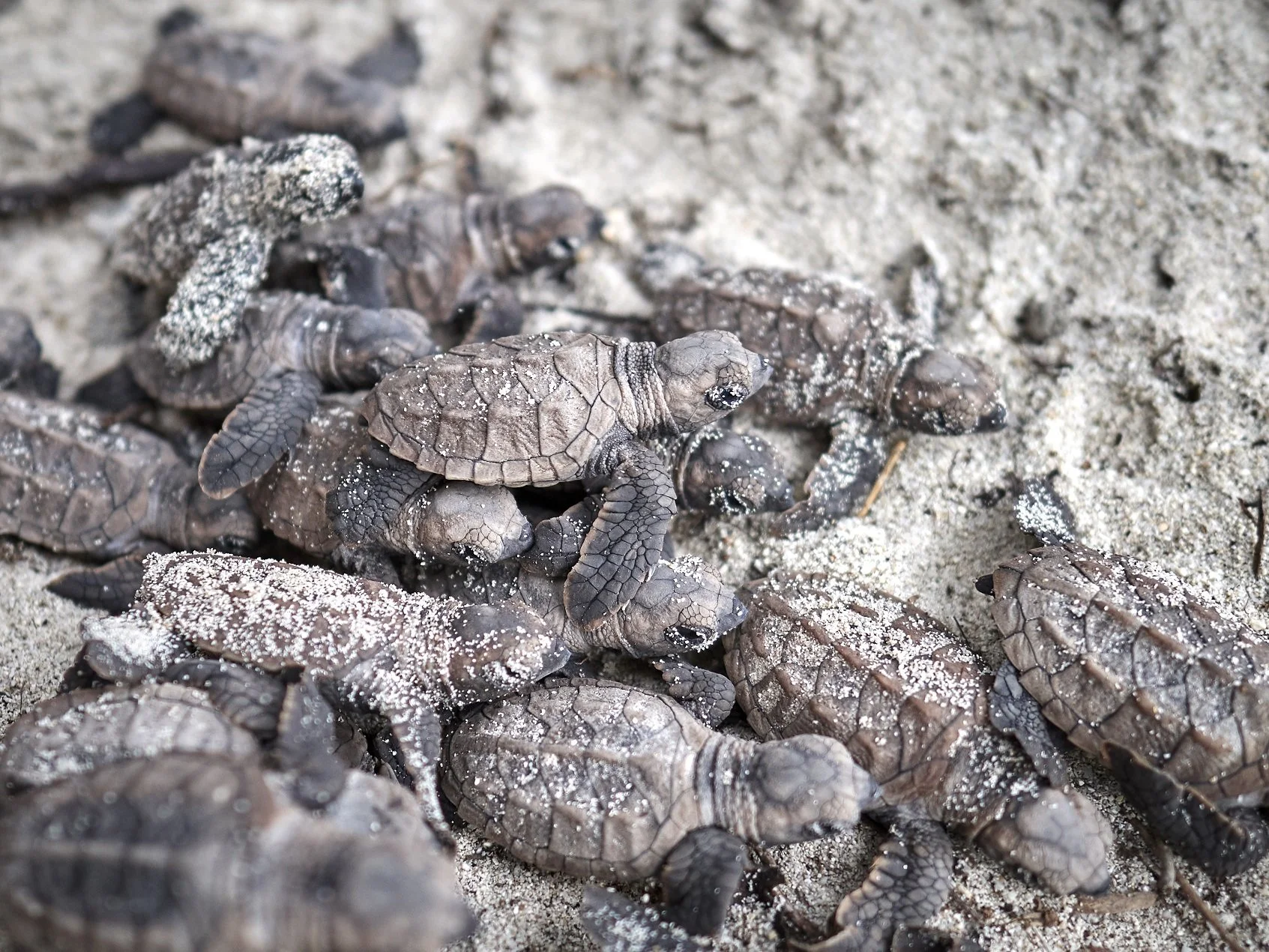 Critically Endangered Hawksbill Turtles emerging from their nests © Ewen Bell
