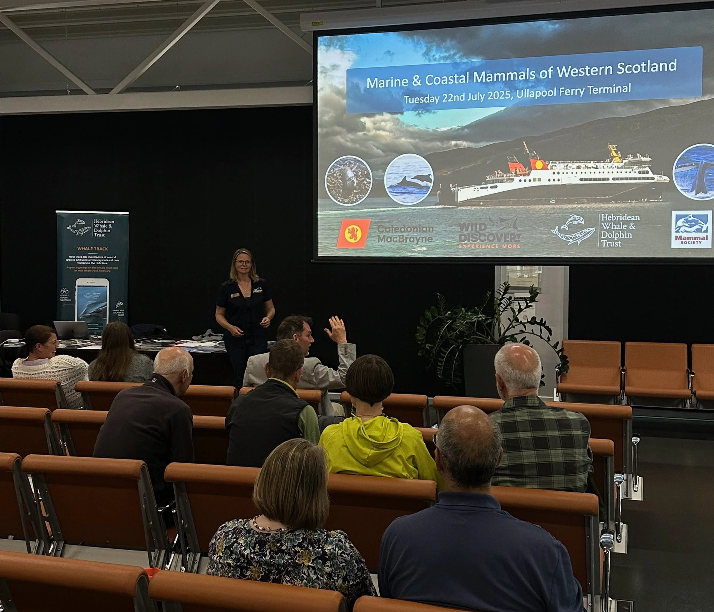 Once again we undertook an evening presentation in Ullapool ferry terminal talking about marine mammals and seabirds of the Minch